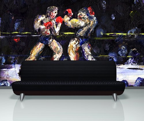 FeaturesThis Printed Vinyl Wall Mural Decal is 11ft Tall X 16.5ft Wide (132" H X 199" W) Item #JH119This is a product by StickerBrand Design. This wall decal is produced and cut in-house at StickerBrand Studio. Our quality & workmanship are superior to all others.StickerBrand Vinyl Wall Decals are great for decorating interior walls. These decals will last for many years. Stickerbrand wall murals DO NOT need glue, paste or any special chemicals, they come with self adhesive backing. Simply peel and apply on your walls.Some decals may come in multiple pieces due to the size of the design. Application is fun and easy. Using only a plastic card, like a credit card or a plastic squeegee. Our decals can be applied on most flat surfaces, including slightly textured walls, interior & exterior walls, mirrors, or any smooth surface. You can test this by applying a regular sticker on your wall, and if it sticks than our wall decals should work on your walls. Do not apply StickerBrand wall decals to freshly painted walls for 2 weeks or until your wall paint is fully cured. *These decals are removable and re-positionable. Wall Mural Decal Sticker Boxing Match Fight Art JH119?