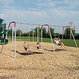 | ✚✚✚ Sportsplay Modern Metal Swing Set What We Like About the Modern Metal Swing Set Give your kids a modern-looking playground with this 8-ft. tall set. Perfectly sized for pre-school and younger elementary kids, these swings are easily accessed and not too high. You can choose this set with 2, 4, 6, or 8 swings. Durable and strong, the galvanized steel poles provide solid support. Each swing is cut-proof black rubber with metal inserts and will last for years. The usage area is 32 feet wide and the length will vary with the number of swings.