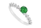 Emerald and Diamond Engagement Ring : 14K White Gold - 0.75 CT TGW Size 13