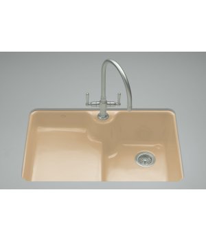 Kohler K-6495-1U-33 Carrizo Undercounter Kitchen Sink with Single-Hole Faucet Drilling, Mexican Sand?Finish/Color:Mexican Sand KOHLER cast iron Single-hole faucet drilling Acid-resistant enamel finish Stepped single-basin design Basin depth: R 9, L 4-1/2 Undercounter installation kit included